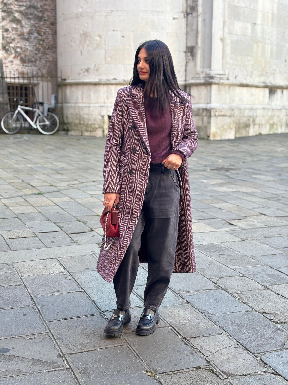 Cappotto spinato – MSH7092 – Cappotto , M.lana , Lungo – Tipo Taglia: Sintetica (L,M,S) – Colori (Bordeaux)