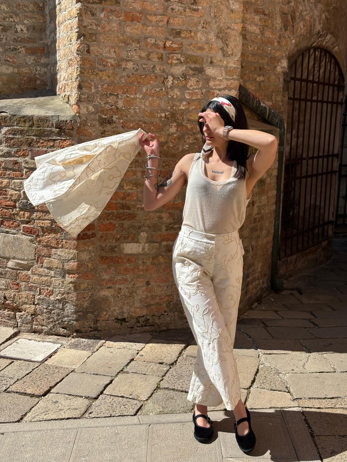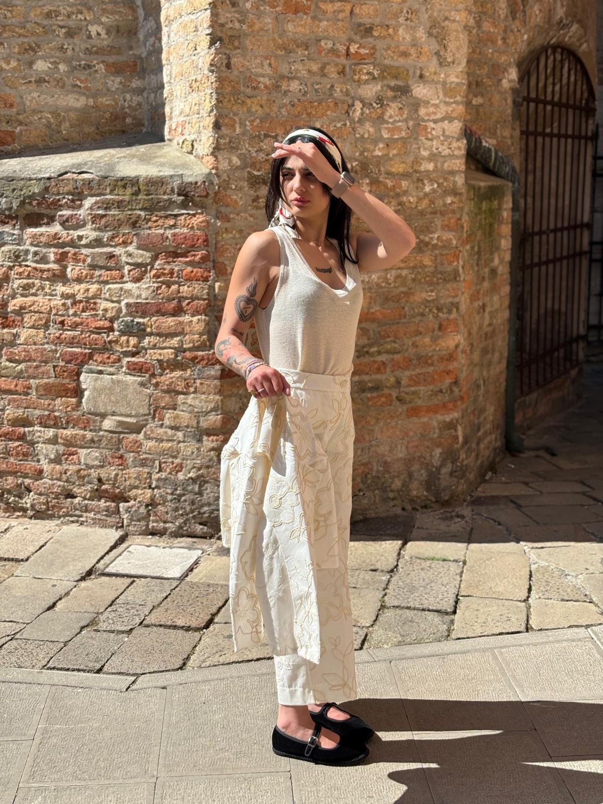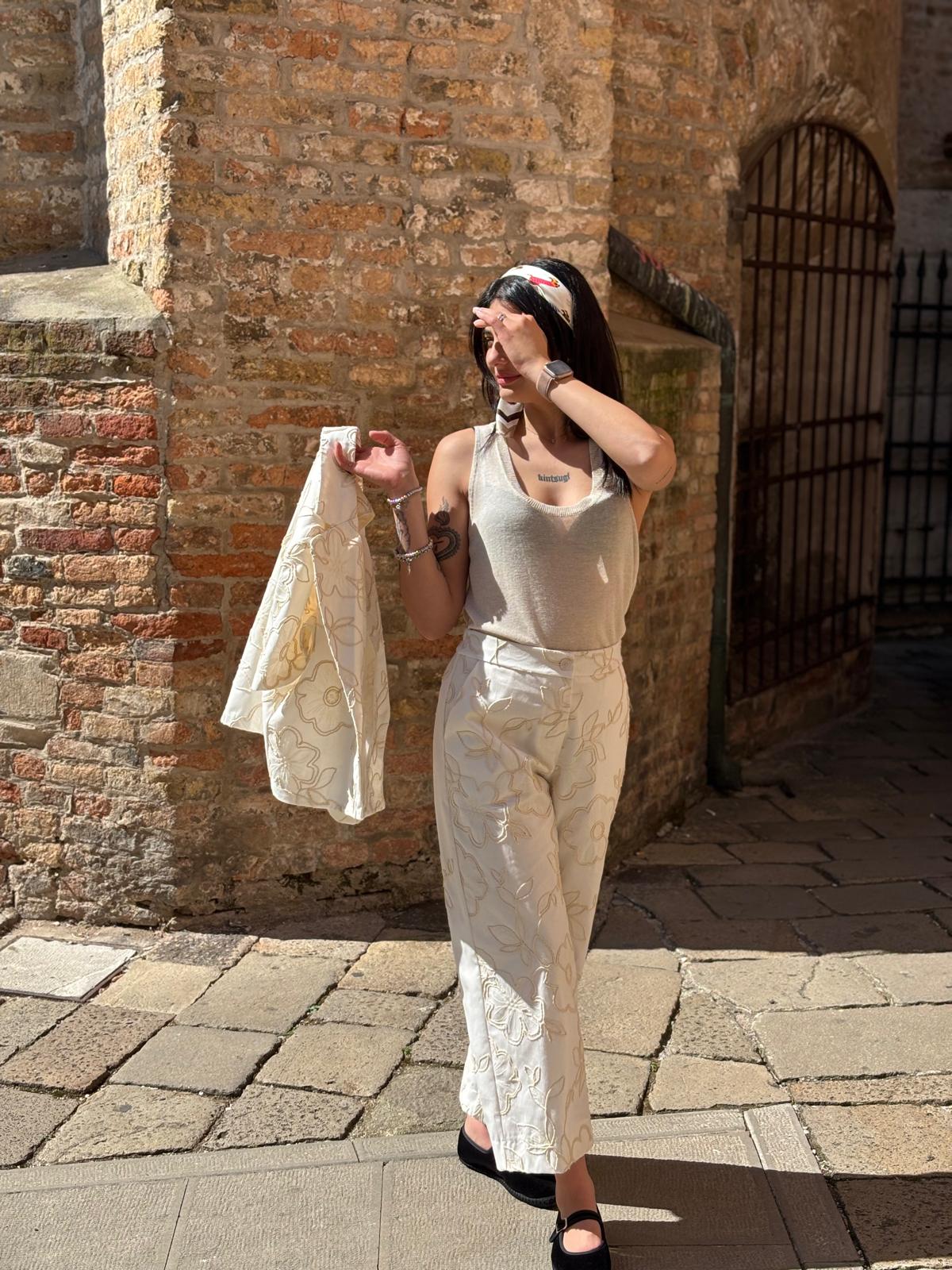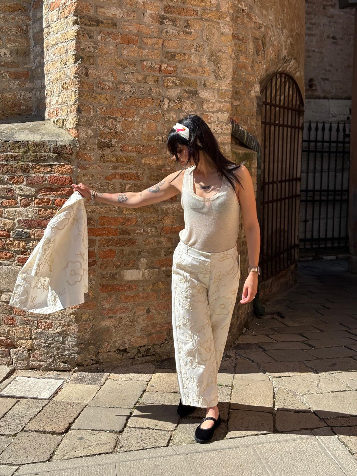 Pantalone palazzo ricamo – NO56807 – Pantalone , M.lino , Palazzo – Tipo Taglia: Sintetica (M,S) – Colori (Panna)