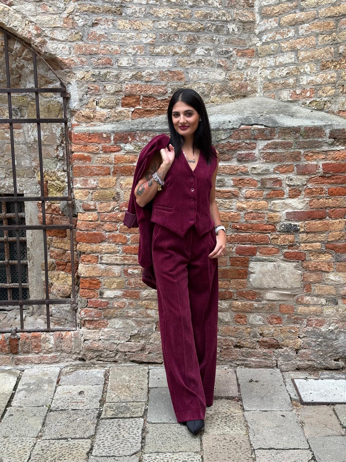 Pantalone velluto Liscio – NO56567 – Pantalone , M.viscosa , Vita alta – Tipo Taglia: Sintetica (L,M,S) – Colori (Bordeaux,marrone,panna)
